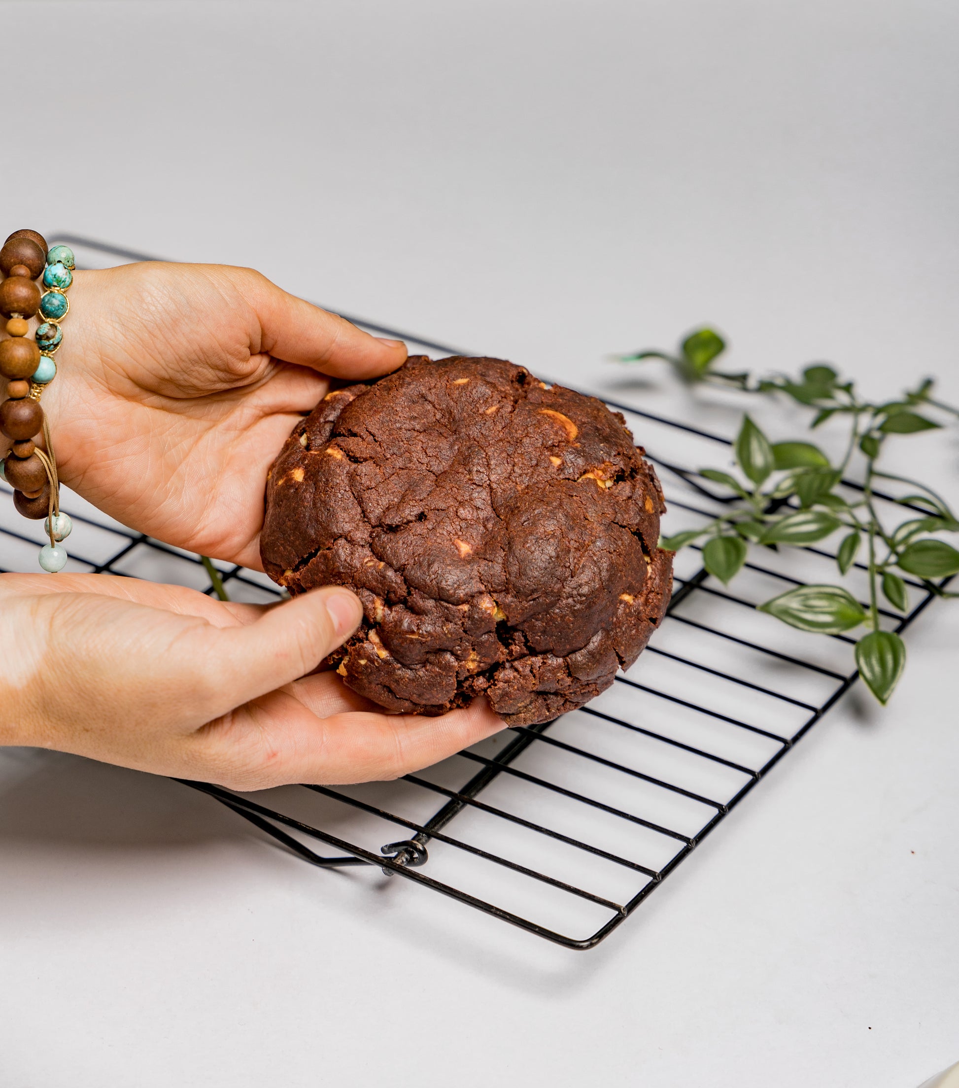 Our Red Velvet Cheesecake White Chocolate Chip Cookie - a heavenly blend of velvety red velvet cookie with a creamy, soft cheesecake filling at its center. Egg-free, perfectly sweet, and made with the finest ingredients, this indulgent treat is irresistible from the first bite.
